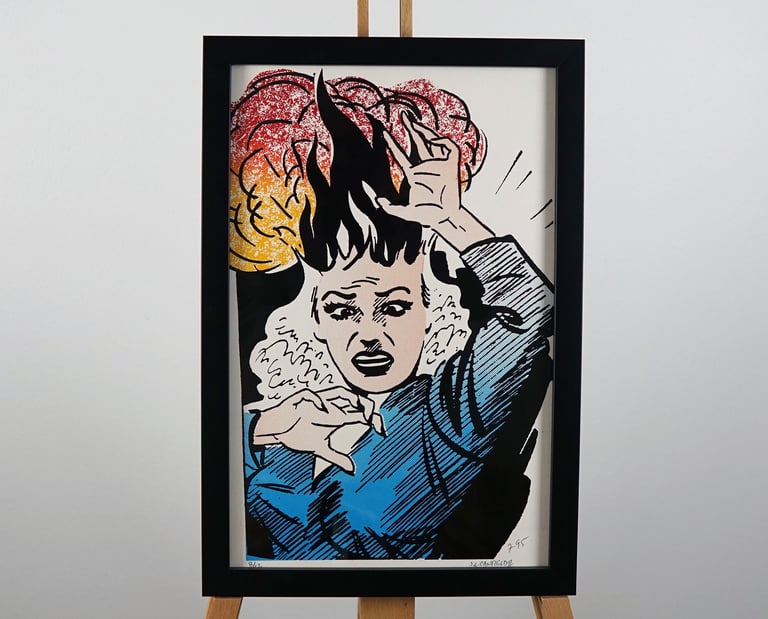 This collection features various lithographs and mixed media pieces from throughout Canfield's career, spanning different sizes, techniques, and subjects. These works showcase his experimental approach and unwillingness to be confined by a single style or format. From small-scale prints to larger pieces, each demonstrates his commitment to bold imagery and cultural commentary that defined his artistic voice.